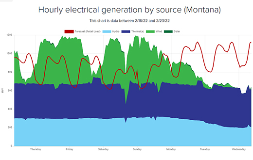 Always-available, on-demand resources –NorthWestern Energy’s natural gas-fired plants and the Colstrip power plant – are providing energy to keep the lights on for Montana customers this morning. NorthWestern’s hydro generation is also contributing energy for customers’ needs. Until wind generation picks back up, which is forecast to occur later this week, energy from the market is being purchased to fill in the gap.