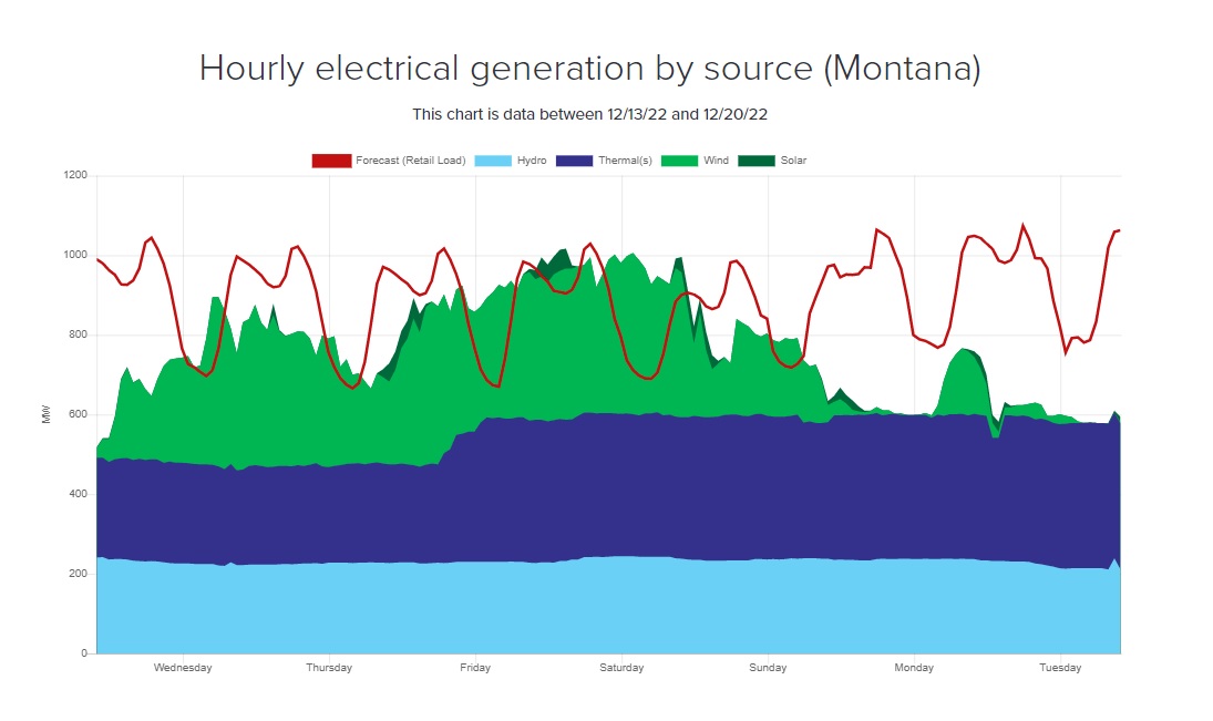 NorthWestern Energy’s natural gas-fired generation facilities and the Colstrip power plant –available in all weather conditions − along with our hydro generation, are providing energy to keep the lights on for Montana customers this week. Until wind generation picks back up, which is forecast to occur later this week, energy from the market is being purchased to fill in the gap.