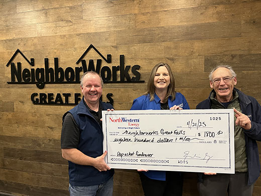Great Falls, Mont. – April 24, 2025 – NorthWestern Energy presented $1,800 to NeighborWorks Great Falls and $1,800 to Family Promise Great Falls raised from our “Make a Basket, Make a Difference” pop-a-shot basketball game at the Great Falls Home & Garden Show and Sale, March 28-30, at Montana Expo Park.